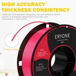 Coupon π ERYONE PETG Filament for 3D Printer 1.75mm Tolerance 0.03mm 1KG(2.2LBS)/Spool – Red π