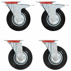 This set of 12 swivel casters will be the perfect accessory for small equipment and furniture like workbench, trolley, coffee table, plant stand, bookshelf, shopping cart, etc. These casters are made of rubber which is distinguished by a good shock and vibration resistance, enabling these casters to run smoothly and quietly. Additionally, their soft surfaces effectively protect your floor from scratching. Besides, the zinc-coated iron frame is highly rust-resistant and thus adds to the catser’s sturdiness and durability. Half of these swivel casters are equipped with brakes for flexible control. Each caster has a maximum loading capacity of up to 100 kg. Delivery includes 6 swivel casters and 6 swivel casters with brakes.