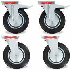 This set of 12 swivel casters will be the perfect accessory for small equipment and furniture like workbench, trolley, coffee table, plant stand, bookshelf, shopping cart, etc. These casters are made of rubber which is distinguished by a good shock and vibration resistance, enabling these casters to run smoothly and quietly. Additionally, their soft surfaces effectively protect your floor from scratching. Besides, the zinc-coated iron frame is highly rust-resistant and thus adds to the catser’s sturdiness and durability. Half of these swivel casters are equipped with brakes for flexible control. Each caster has a maximum loading capacity of up to 180 kg. Delivery includes 6 swivel casters and 6 swivel casters with brakes.