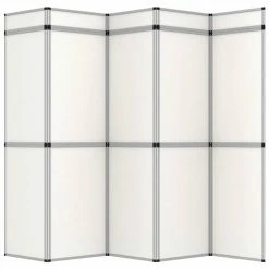 This wall can be used as a room divider or as a presentation wall for trade fairs. Advertising and promotion posters can easily be attached to the exhibition wall, which thus serves as a giant display system. Five extra top headers allow to show company name or other important information. Made of quality aluminium alloy and PP board, this display wall is durable and stable. The exhibition board can be assembled and placed into different shapes to meet various aesthetic needs. When not in use, it can be easily dismantled and folded for easy storage.