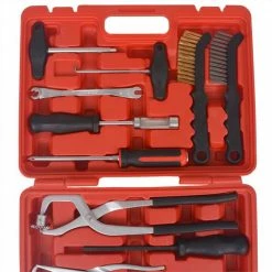 The 15-piece brake maintenance and assembly toolset provides everything you need to work on drum and disc brakes with ease and effectivity. These high-quality tools are made of durable carbon steel. This comprehensive and well-organised kit is delivered in a compact carrying case that is easy to transport and store.