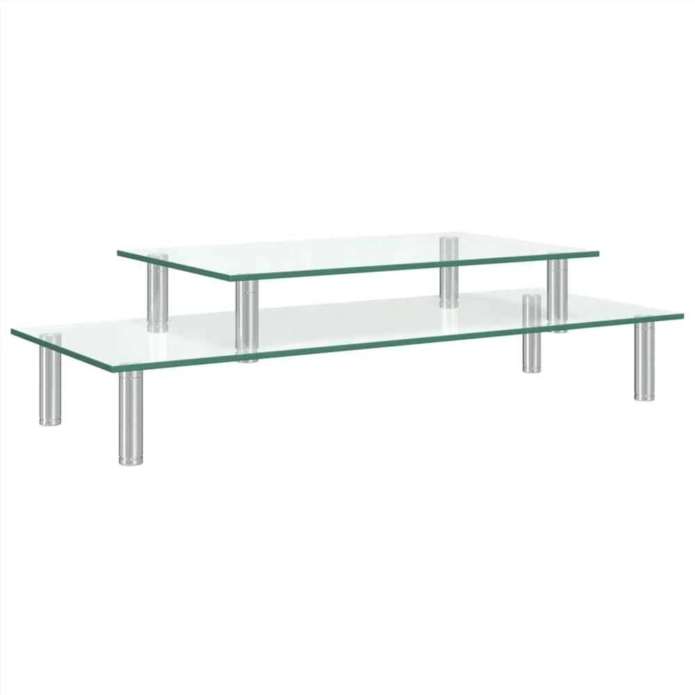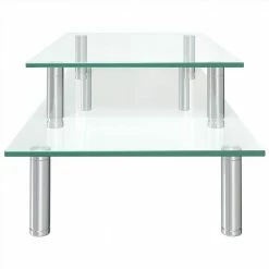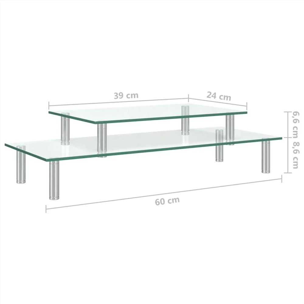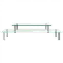 The must-have 2-tier monitor stand covers the keyboard and organises your work desk efficiently. The desktop riser elevates your computer monitor, creating extra space under riser to store keyboard, game consoles, laptops and other essentials. It also raises monitor up to prevent back and neck pains due to improper posture. The transparent glass top makes it easy to clean, and the stainless steel tubes provide stability for the item. This desktop stand with multipurpose design can be used as a monitor riser, printer stand, computer stand and desk shelf etc.