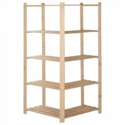 This storage corner rack is an ideal solution to both household and commercial storage, such as kitchen, laundry room, basement, bathroom, office, garage, workshop, or anywhere else you may need additional storage space. Made of solid pinewood, the storage shelf is extremely stable and durable. You can keep its natural colour or add a coat of paint or other finish in your favourite colour. Thanks to the 5-tier design, this rack unit provides plenty of room to keep all items neatly organised. Additonally, this wooden storage rack can be perfectly placed against any wall corner.