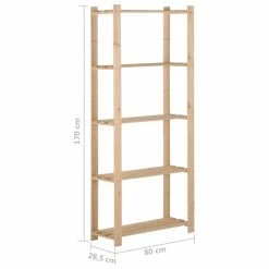 This storage rack is an ideal solution to both household and commercial storage, such as kitchen, laundry room, basement, bathroom, office, garage, workshop, or anywhere else you may need additional storage space. Made of solid pinewood, the storage shelf is extremely stable and durable. You can keep its natural colour or add a coat of paint or other finish in your favourite colour. Thanks to the 5-tier design, this rack unit provides plenty of room to keep all items neatly organised.