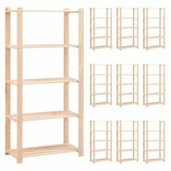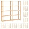 Our solid wooden storage rack is an ideal solution to both household and commercial storage, such as kitchen, laundry room, basement, bathroom, office, garage, workshop, or anywhere else you may need additional storage space, providing plenty of room to keep all items neatly organised. Made of solid pinewood, the storage shelf is extremely durable! You can keep its natural colour or add a coat of paint or other finish in your favourite colour. Thanks to the included mounting materials, our storage unit is easy to assemble. Delivery includes 10 racks.