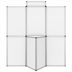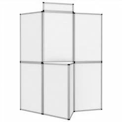 This wall can be used as a room divider or as a presentation wall for trade fairs. Advertising and promotion posters can easily be attached to the exhibition wall, which thus serves as a giant display system. The extra top header allows to show company name or other important information. Made of quality aluminium alloy and PP board, this display wall is durable and stable. The exhibition board can be assembled and placed into different shapes to meet various aesthetic needs. When not in use, it can be easily dismantled and folded for easy storage. In addition, the triangular table provides extra space to place your promotion or advertising brochures.