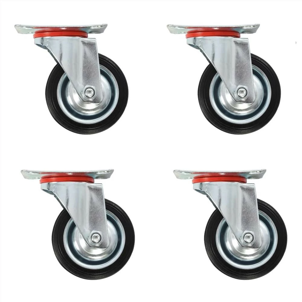 This set of 8 swivel casters will be the perfect accessory for small equipment and furniture like workbench, trolley, coffee table, plant stand, bookshelf, shopping cart, etc. These casters are made of rubber which is distinguished by a good shock and vibration resistance, enabling these casters to run smoothly and quietly. Additionally, their soft surfaces effectively protect your floor from scratching. Besides, the zinc-coated iron frame is highly rust-resistant and thus adds to the catser’s sturdiness and durability. Each caster has a maximum loading capacity of up to 50 kg. Delivery includes 8 swivel casters.