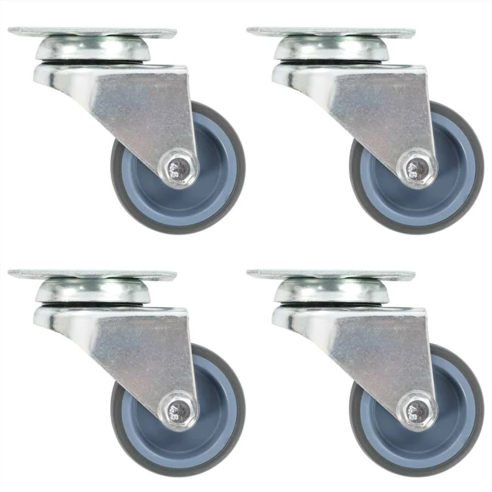 This set of 8 twin-wheel swivel casters will be the perfect accessory for small equipment and furniture like workbench, trolley, coffee table, plant stand, bookshelf, shopping cart, etc. These casters are made of TPR (thermoplastic rubber) which is distinguished by a good shock and vibration resistance, enabling these casters to run smoothly and quietly. Additionally, their soft surfaces effectively protect your floor from scratching. Besides, the zinc-coated iron frame is highly rust-resistant and thus adds to the catser’s sturdiness and durability. Each caster has a maximum loading capacity of up to 100 kg. Delivery includes 8 swivel casters.