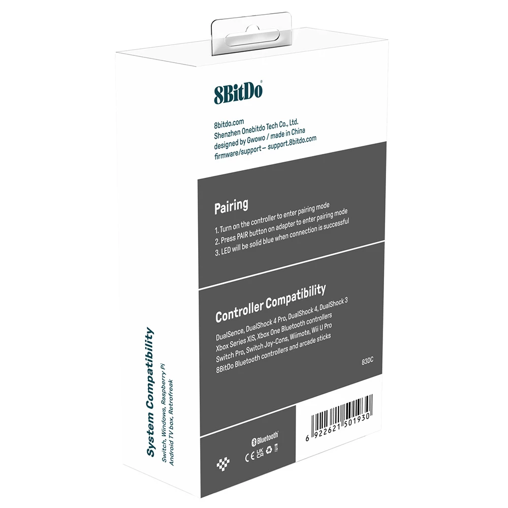Wide compatibility range: Works with all 8BitDo Bluetooth controllers and arcade sticks, Xbox One Bluetooth controller, PS5 DualSense DualShock 3, DualShock 4, DualShock 4 Pro, Wii Remote, Wii U Pro, Switch Joy-Con, Switch Pro controllers