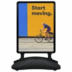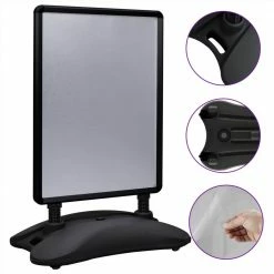 If you are looking for a poster stand for your products or services adversiting and promotion, here our water-based poster holder comes to help! Made of the aluminium frame, which is durable and lightweight. The heavy-duty plastic base can be filled with water or sand to create a weighted and stable footing, and the spring loaded design ensures that your sign will withstand the highest winds. Your posters will remain fully protected behind the galvanized sheet on each side of the sign, keeping your posters in top condition whilst on display. Dual-side with PVC film protects from dirt that is easy to maintain. In addition, click system helps quickly install and remove the poster. This waterbase poster stand is easy to assemble.