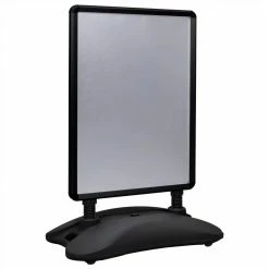 If you are looking for a poster stand for your products or services adversiting and promotion, here our water-based poster holder comes to help! Made of the aluminium frame, which is durable and lightweight. The heavy-duty plastic base can be filled with water or sand to create a weighted and stable footing, and the spring loaded design ensures that your sign will withstand the highest winds. Your posters will remain fully protected behind the galvanized sheet on each side of the sign, keeping your posters in top condition whilst on display. Dual-side with PVC film protects from dirt that is easy to maintain. In addition, click system helps quickly install and remove the poster. This waterbase poster stand is easy to assemble.