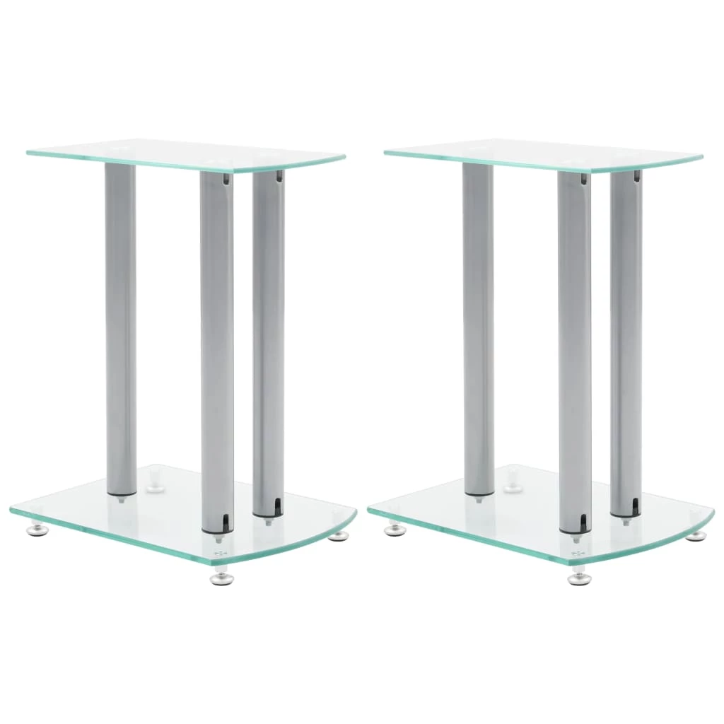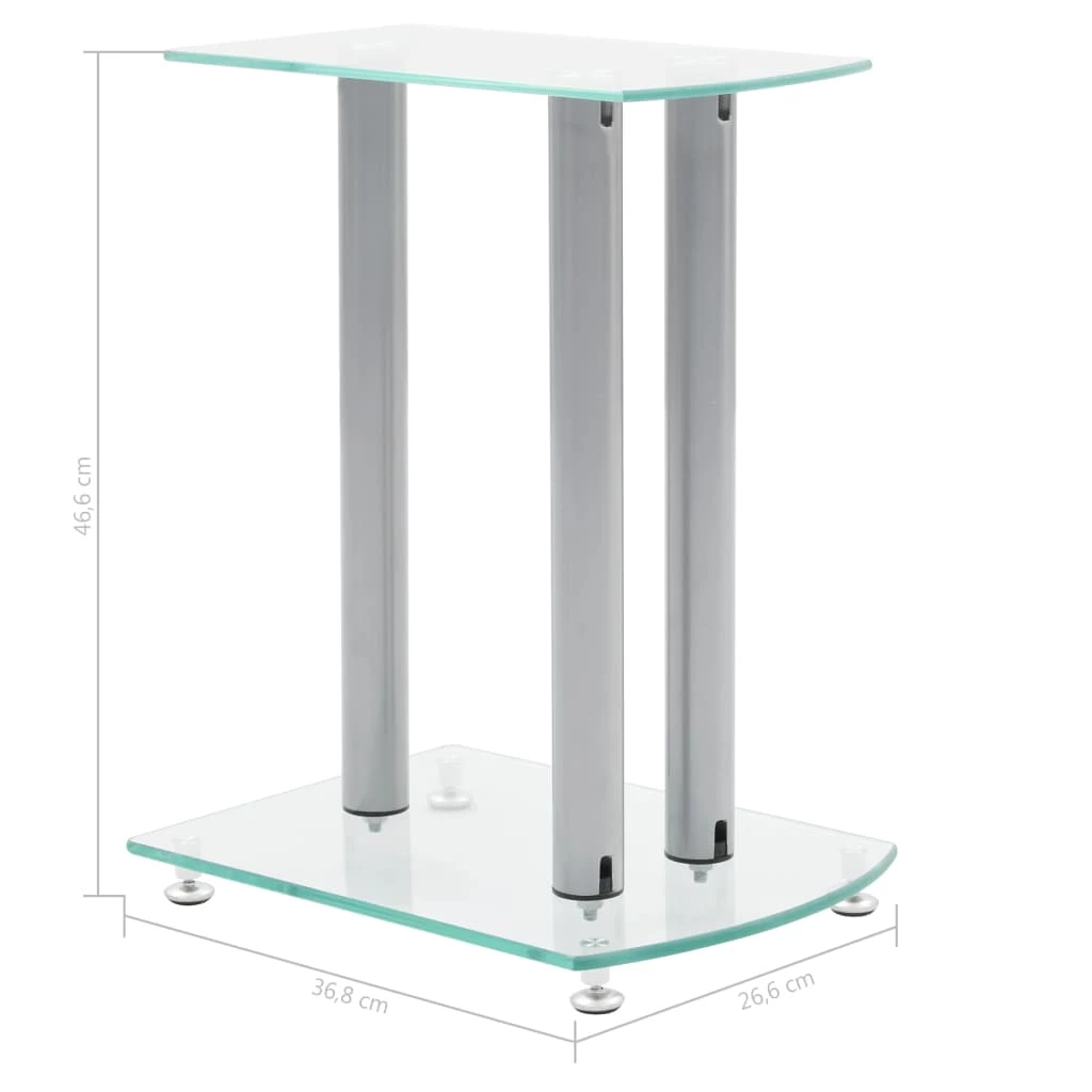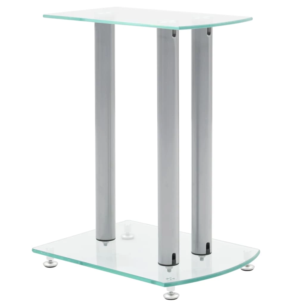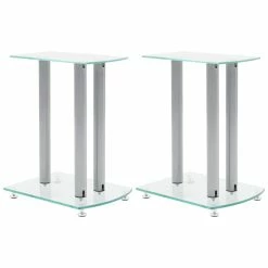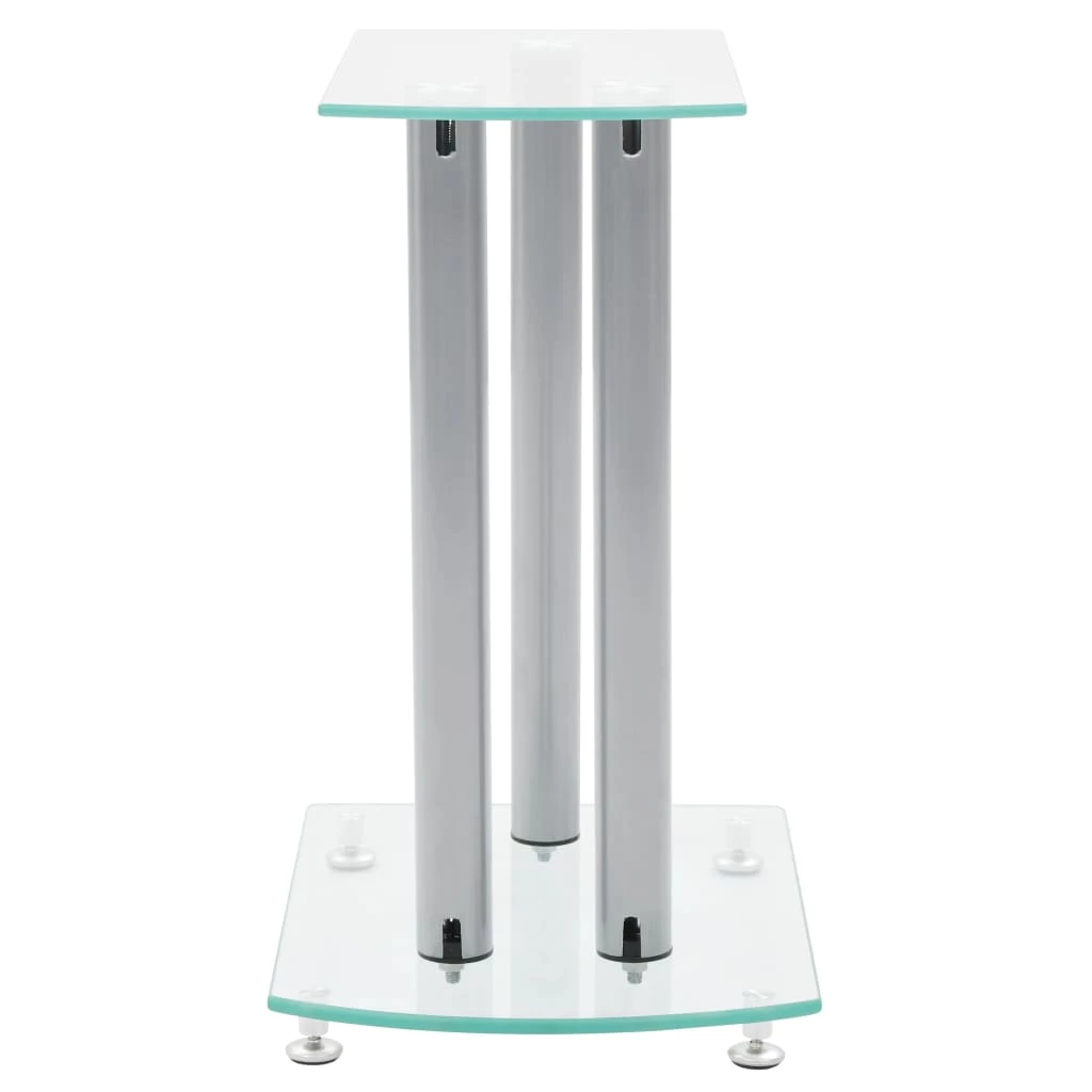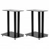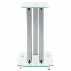 This pair of Speaker Stands has been made to compliment monitor speakers. The top and base plates of the stand are made of safety glass. There are three aluminum pillars on each Stand, which will provide sturdy support to the speakers. The modern elegant design blends well with any contemporary home environment. The four round spikes under the base plate help to reduce vibration and prevent your carpet or wood floor from being flattened or damaged by the base plate. They also make lifting of the stand easier. Delivery includes two speaker stands.