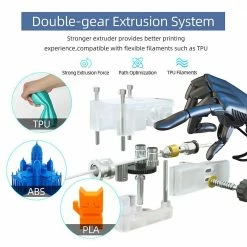 The extrusion system is able to reduce the chances of filament tangle and is compatible with PLA & flexible filaments.Strong extrusion force; Path optimization.