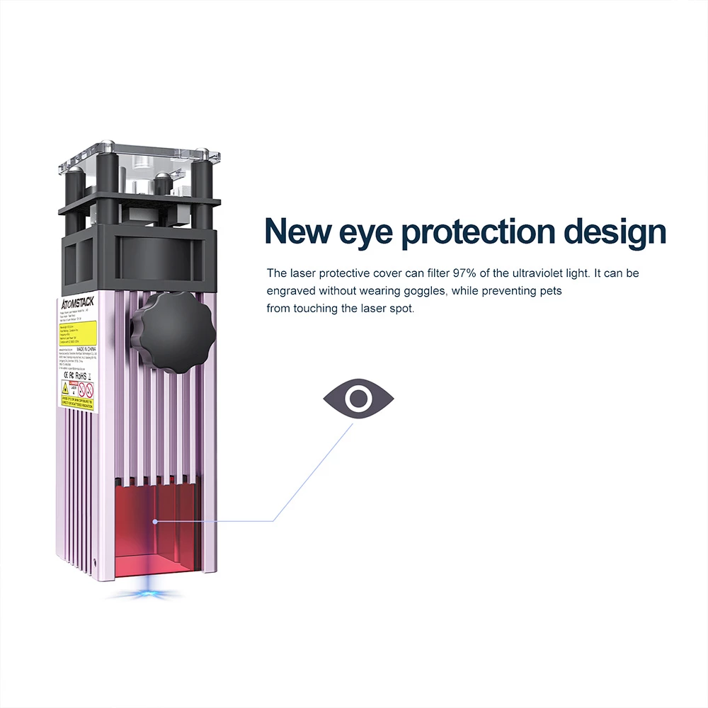 The M40 laser module is equipped with a protective cover that can filter 97% of the ultraviolet light without the need to wear additional protective glasses.