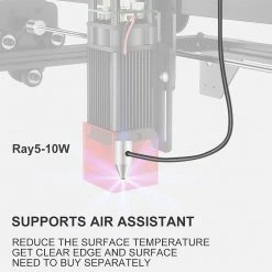 The laser power is 5~5.5W, and the ultra-fine laser focus area is reduced to 0.08*0.08mm. The high-density laser can easily cut 6mm thick wood and black acrylic; it can directly engrave smooth stainless steel metal and ceramics.