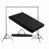 With this complete background system you can do whatever your imagination comes up with as a photographer, using it in the studio or on location. The lightweight system is easily and quickly built up and made of aluminium. One green cotton backdrop is included in this system giving you the option to use chroma-key. The system can also be used in combination with other backdrops and/or paper rolls. This flexible background system is suitable for portrait photography, commercial photography and table-top photography. The background has a maximum width of 300 cm and the height can vary between 75 to 210 cm. If you wish to use the system on location, this should not pose any problems. It is easily unassembled and assembled very quickly. Transportation is simple with the carrying bag of approximately 85 x 15 x 15 cm which is included in delivery. Chroma key: By filtering out the green colour of the background, you can project any picture or image you can imagine on your background. A known example of chroma key is the weather man who is actually standing in front of a green wall, while the charts and forecasts can be seen behind his back.