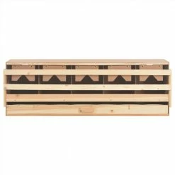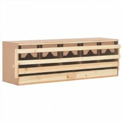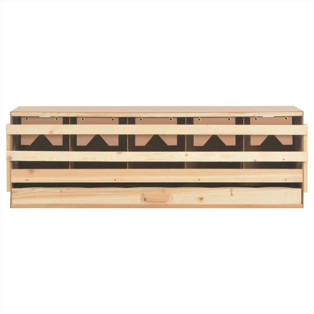 This wooden nesting box will provide your chickens a comfortable and sheltered place to lay eggs! The 5 spacious compartments allow 5 small hens to settle and lay eggs. The eggs will gently fall through the holes on the floor and into the underlying drawer, which makes it easy to pick up eggs. Removable bottom layer allows you to clean up easily. Perches can be folded up to prevent night roosting. The flat roof makes it comfortable for hens to settle in and also allows you to easily stack several nesting boxes up. You can check our shop for chicken nesting boxes with sloping roof. Made from solid pine wood and MDF, the poultry laying nest is built for long-term use. The nesting box is easy to assemble.