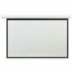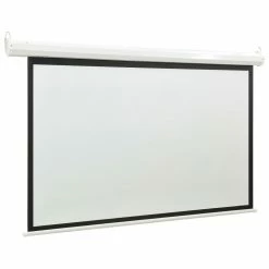 The electric projector screen with remote control is perfect for classrooms, home theatres, public displays, conference room presentations, etc. This electric projector screen is made of fabric and iron housing, making it strong and durable. The matte white viewing surface diffuses the projected light evenly. The 160 degrees viewing area absorbs the light source completely, avoiding the light reflection and projecting the image perfectly. The home theatre screen also features 4-side black borders to increase picture focus and contrast. With a motor, this motorised projector screen can be lowered and retracted automatically. Thanks to the lightweight construction, it is easy for wall mounting installation. The included remote control requires 2 AAA batteries (included) and allows you to operate the screen more freely.