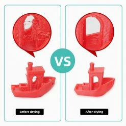 According to different 3D filament types, users can adjust the temperature of the drying box. There are 3 levels that can be set: 40-45 Degrees Celsius, 45-50 Degrees Celsius, and 50-55 Degrees Celsius.