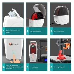 This dry box has the functions of keeping the filament dry and removing moisture from various filaments, giving you better print results, and also can be used to dry the filament for storage, sealed protection, and comprehensive dustproof. And the ultra quiet design can give you a better working environment.