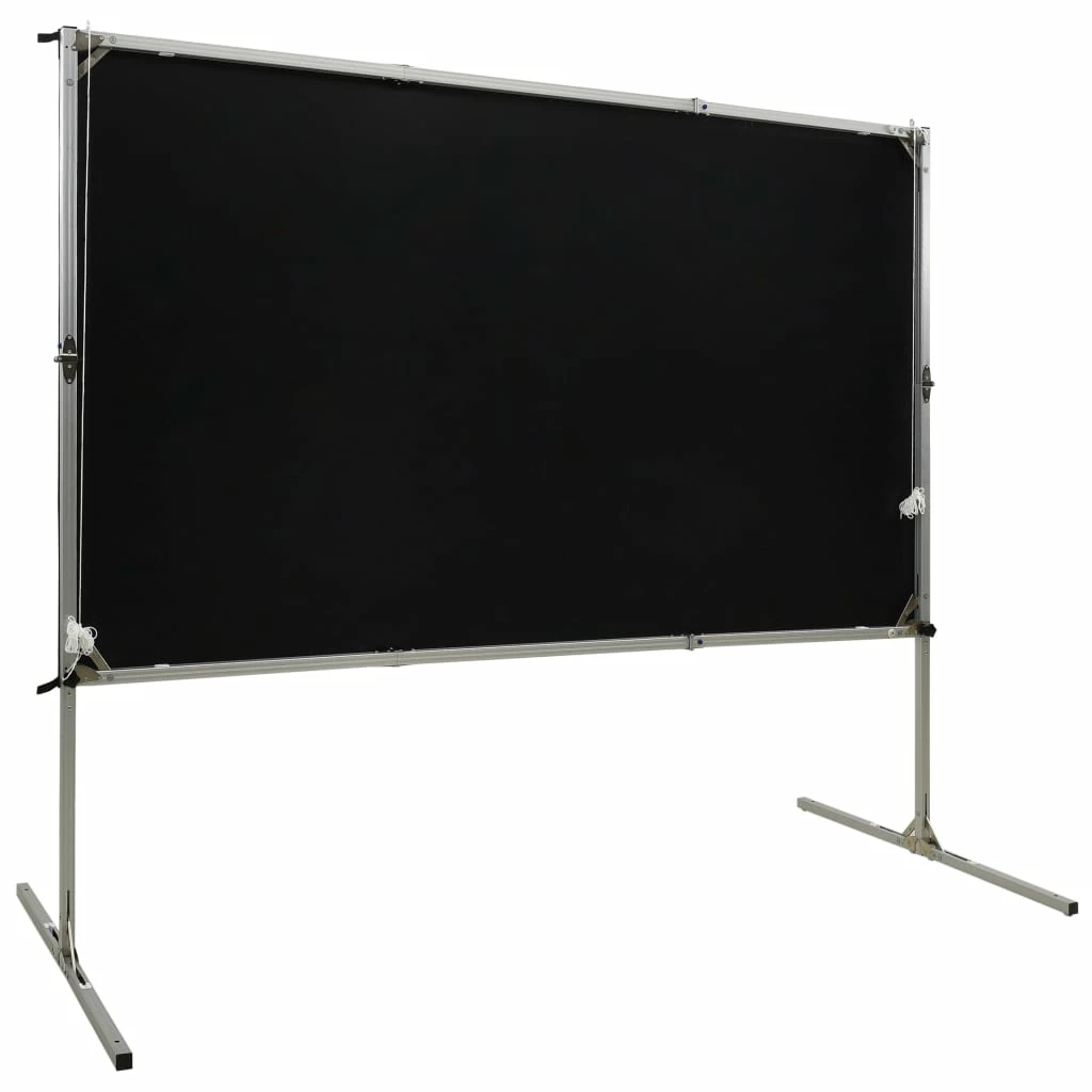 This fast-fold projection screen is designed for rental and staging presentations, performances, etc. The projector screen is made of fabric, making it strong and durable. The frame and legs are constructed of sturdy aluminium tubing and feature functions of simple, quick set up and dismantling of the screen. The 160 degrees viewing area completely absorbs the light source, avoiding the light reflection and projecting the image perfectly. Thanks to the lightweight construction, it is portable and easy to carry. This folding screen gives you the flexibility to give high-quality video presentations anywhere and at any time.