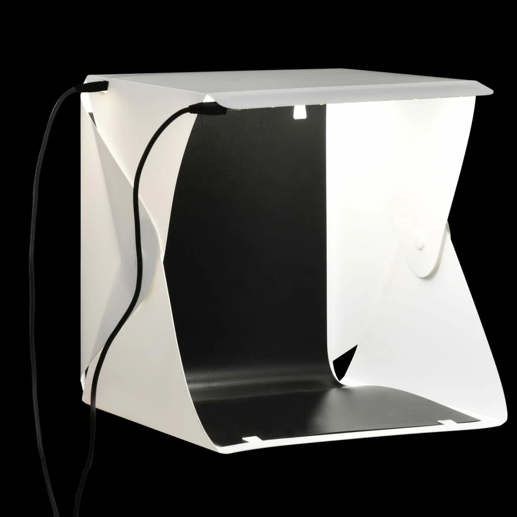 This portable LED photo studio light box has been designed to take studio-quality pictures for your online shop small products using your smartphone or DSLR. Equipped with super bright LED beads, the photography lightbox provides average light for your products. The lightbox is supplied with 2 backdrops (black and white) to suit your needs better. Featuring a foldable design, the studio lighting tent is easy to carry and store. Additionally, a micro USB cable is also included in the delivery.
