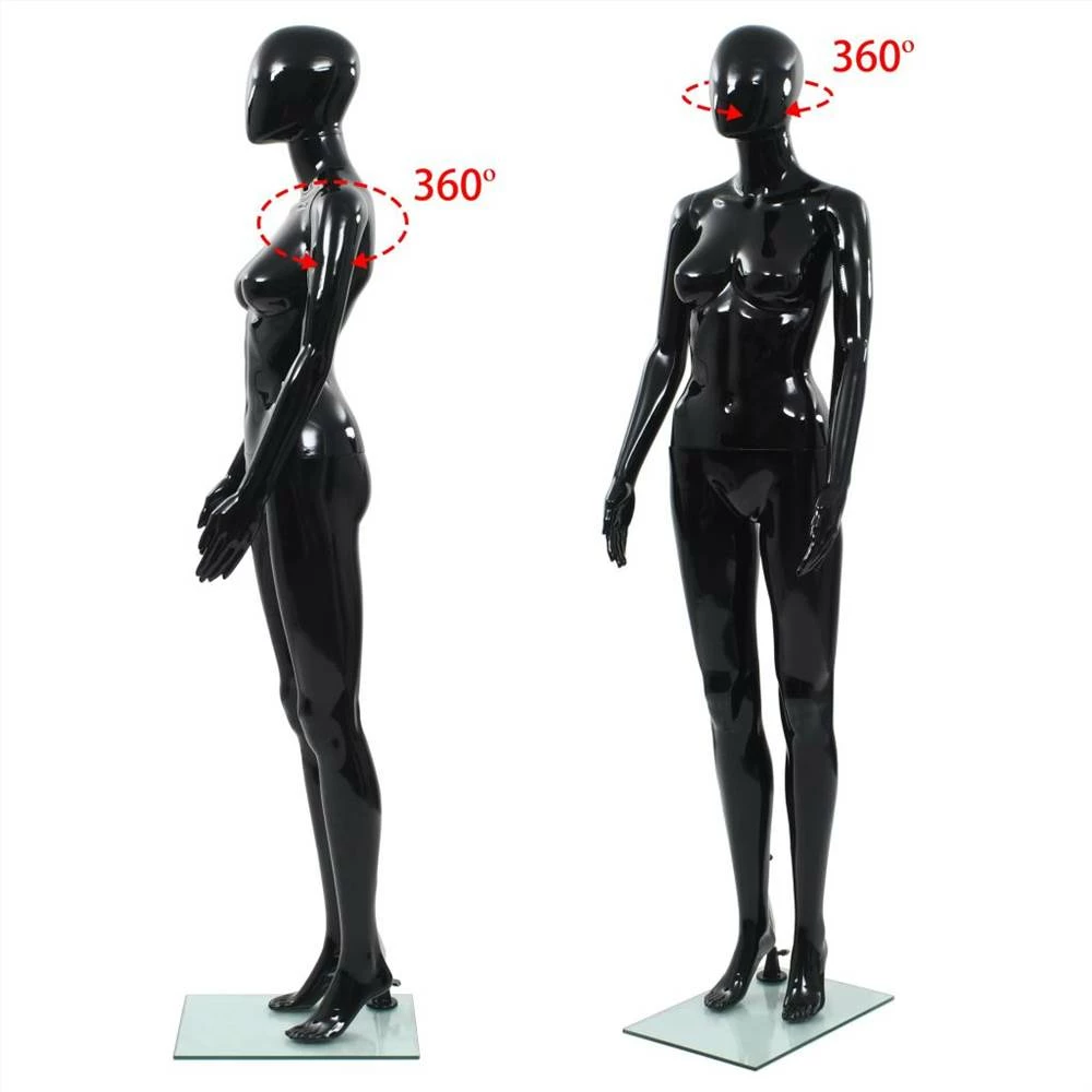 This full-body female mannequin with a glass base and a high-gloss paint finish can be used to display clothes, wigs or shoes in shop windows. The mannequin consists of 5 parts: head, torso, legs, left arm, and right arm. The head and the arms can be rotated 360Β°, which allows you to arrange the mannequin in a variety of different positions. The whole body is made of polypropylene, which is lightweight and durable. The glass base with aluminium stand ensures stability and allows the model to display shoes. Assembly is easy.