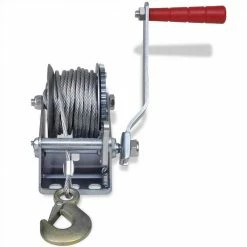 This 363 kg / 800 lbs hand winch is an ideal tool for pulling large or heavy items. This high-quality hand winch, with a cable length of 10 m, is extremely sturdy. Thanks to quality iron used in its construction, it is very durable. This high-quality hand winch is perfect for use on pickup trucks, trailers and other mobile applications. You can check our shop for the matching boat trailer winch stand (SKU 90634) for the complete set.