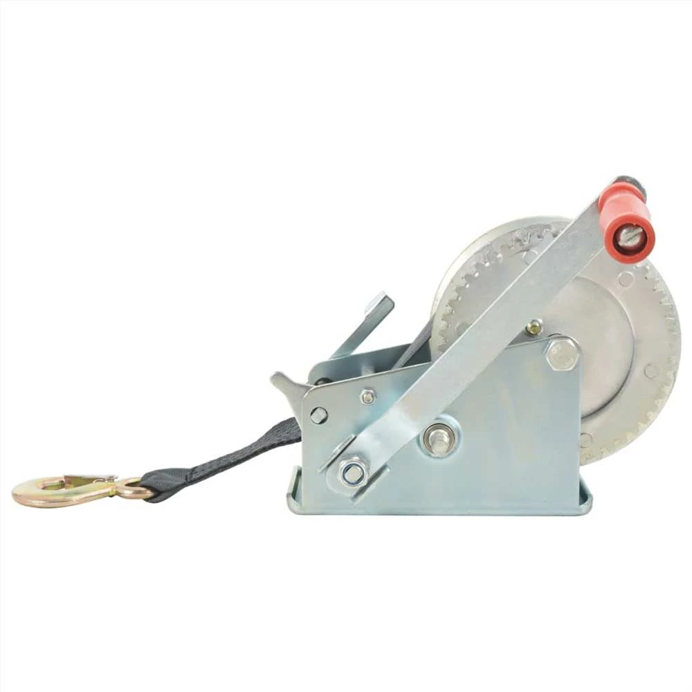 This 1360 kg / 3000 lbs hand winch with strap is an ideal tool for pulling large or heavy items. This heavy-duty hand winch, with lightweight yet high-strength webbing strap, is extremely sturdy. Made of polyester, the strap is corrosion- and weather- resistant, and will not tangle up during pulling. Additionally, the webbing strap can reduce vibration, and cause little friction and less scratch on your bumper. Thanks to quality iron used in its construction, the manual winch is very durable and will serve a long-term use. This hand winch with webbing strap is ideal for picking up trucks and trailers, as well as other mobile applications. You can check our shop for the matching boat trailer winch stand (SKU 90634) for the complete set.