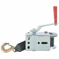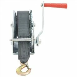 This 540 kg / 1200 lbs hand winch with strap is an ideal tool for pulling large or heavy items. This heavy-duty hand winch, with lightweight yet high-strength webbing strap, is extremely sturdy. Made of polyester, the strap is corrosion- and weather- resistant, and will not tangle up during pulling. Additionally, the webbing strap can reduce vibration, and cause little friction and less scratch on your bumper. Thanks to quality iron used in its construction, the manual winch is very durable and will serve a long-term use. This hand winch with webbing strap is ideal for picking up trucks and trailers, as well as other mobile applications. You can check our shop for the matching boat trailer winch stand (SKU 90634) for the complete set.