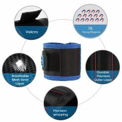 5 strong magnets embedded in each wristband surround almost entire wrist for holding screws, nails, bolts, washers, drill bits.