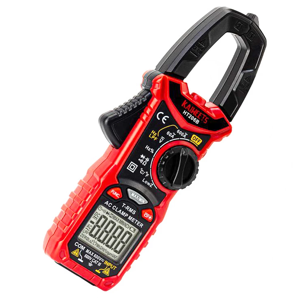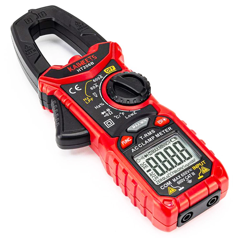 True-RMS clamp meter: This voltage meter can accurately measure AC Current, AC/DC Voltage, Frequency or Duty Cycle, Resistance, Capacitance and also provides Diode, Continuity, and Temperature tests. True RMS for accurate measurements on non-linear loads.