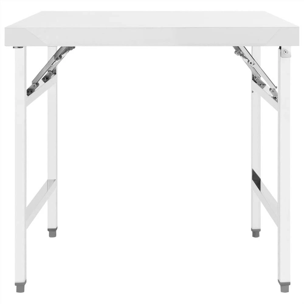 This foldable work table is perfect for food preparation and service and is ideal for a kitchen bar, restaurant, school, and other commercial space. This gastronomy worktable, made of stainless steel, is strong and stable for years. Its reinforced tabletop with high load capacity is ideal for placing kitchen tools, food and other essentials. The table is also easy to clean with a damp cloth. Thanks to its foldable design, this workbench can be set up and folded easily to save space when not in use.