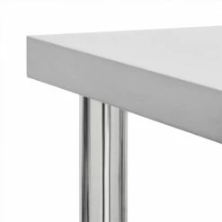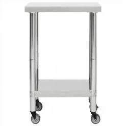 This work table is perfect for food preparation and service in a kitchen, restaurant, school and commercial space. This gastronomy worktable is made of stainless steel, durable for lifetime use. The smooth surface is corrosion-resistant and easy to clean. The bottom board offers extra storage space. The workbench features 4 moveable wheels so that you can move it around freely. In addition, 2 wheels have brakes to keep the table in place.