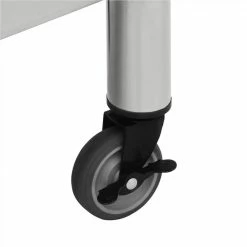 This work table is perfect for food preparation and service in a kitchen, restaurant, school and commercial space. This gastronomy worktable is made of stainless steel, durable for lifetime use. The smooth surface is corrosion-resistant and easy to clean. The bottom board offers extra storage space. The workbench features 4 moveable wheels so that you can move it around freely. In addition, 2 wheels have brakes to keep the table in place.