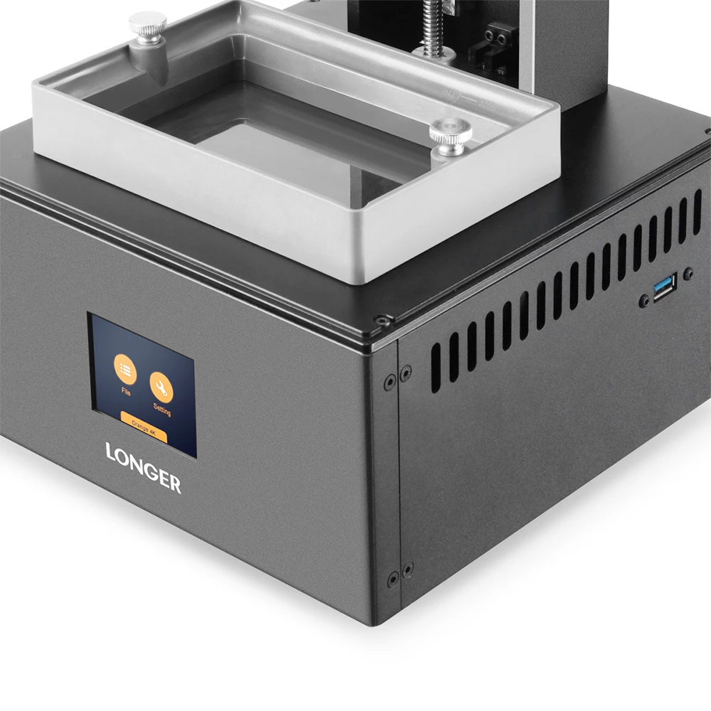 Easy leveling with four screws. With the algorithm embedded in Longerware, the UV exposure through each subpixel will be controlled accurately to deliver final 3D models with ultra-smooth surfaces and ultra-fine details. Orange 4K is compatible with Chitubox as well.
