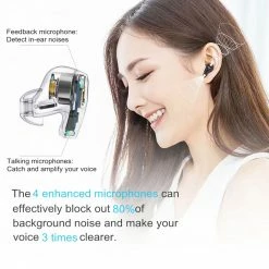 4 microphones and a noise reduction algorithm work in real-time to pick up your voice and cancel out background noises for crystal-clear clarity.