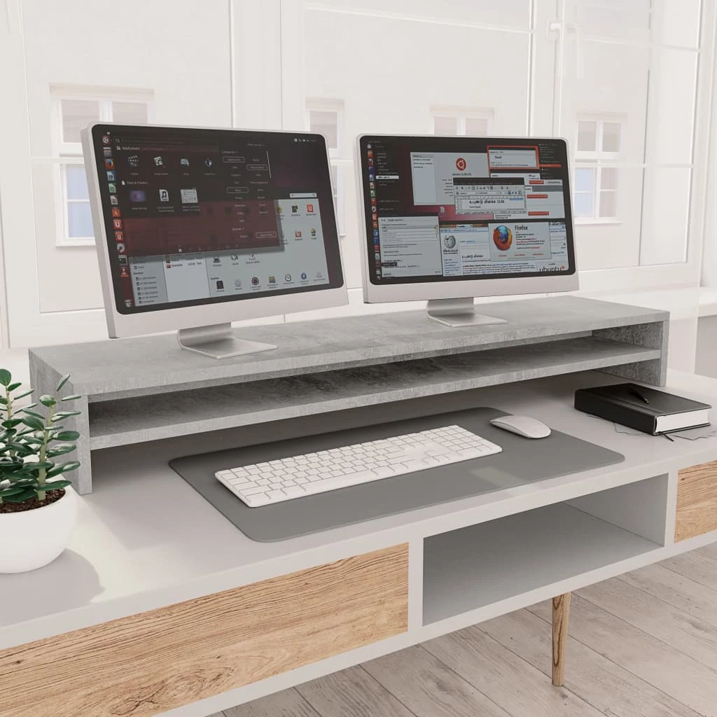 You can now raise your monitors to the perfect height with our monitor stand. The sleek design makes it a practical and decorative addition to your working area. The stand levels up monitors, so as to help reduce eye, neck and back strain. Its extra wide design holds up to 2 monitors and the integrated shelf allows you to free up more space on your desk and keep your keyboard, pens and other stationery items well organised and within reach. Made of premium board, this screen riser is built to last.