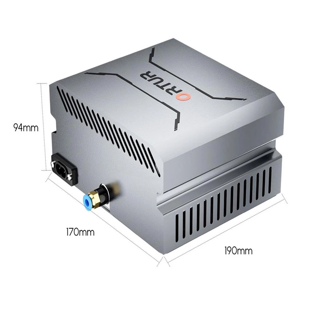 The Ortur air pump has a service life of up to one year in an ideal working environment. Applicable with Ortur LU2-4 LF and LU2-10A laser module.