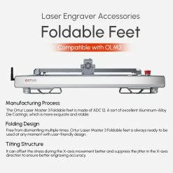 The folding stands are designed for ORTUR Laser Master 3. Made of aluminum alloy material, they are more exquisite and stable. With foldable feet, you can adjust the height of the laser engraver for engraving thicker materials.