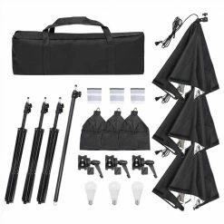 This photo studio kit is an ideal choice for photographing in the studio or on location. Excellent lighting performance: The softboxes provide a soft light, which prevents harsh shadows. Thanks to its cold light source, there’s no heat production in the studio. This is continuous lighting and not a set of flashes.Flexible background system: The flexible background system is easy to set up and can be combined with backdrop which has no seams and is colourfast. Each stand has a 1/4 inch standard thread suitable for analog and digital cameras.Easy storage: Thanks to the included carrying bag, the kit is easy to store and carry.
