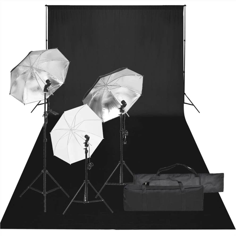 This photo studio kit is an ideal choice for photographing in the studio or on location. Excellent lighting performance: By using the daylight lamps with a colour temperature of 5500 Kelvin, it is possible to capture your subject in a natural way. The three umbrellas provide soft light, so harsh shadows are avoided.Flexible background system: The flexible background system is easy to set up and can be combined with backdrop which has no seams and is colourfast. Each stand has a 1/4 inch standard thread suitable for analog and digital cameras.Easy storage: Thanks to the included carrying bag, the kit is easy to store and carry.