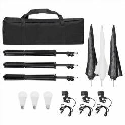 This photo studio kit is an ideal choice for photographing in the studio or on location. Excellent lighting performance: By using the daylight lamps with a colour temperature of 5500 Kelvin, it is possible to capture your subject in a natural way. The three umbrellas provide soft light, so harsh shadows are avoided.Flexible background system: The flexible background system is easy to set up and can be combined with backdrop which has no seams and is colourfast. Each stand has a 1/4 inch standard thread suitable for analog and digital cameras.Useful reflector set: Each reflector comes with different surface panels. You can work with different combinations for warmer or cooler lights for both indoor and outdoor photography.Easy storage: Thanks to the included carrying bag, the kit is easy to store and carry.