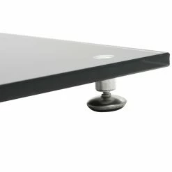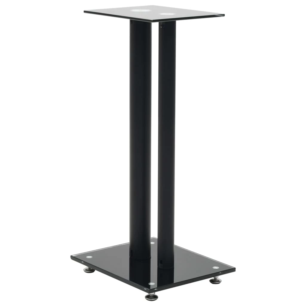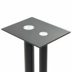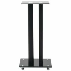 Enjoy the quality of your free standing sound system with our pair of speaker stands. Its modern design combines glass and aluminum and will fit any interior. Thanks to the heavy-duty tempered glass surface and the sturdy pillars, your speakers will get the needed support. The four skidproof plastic pads under the base plate help to reduce vibration and prevent your carpet or wood floor from being damaged by the base plate. Delivery includes 2 speaker stands.