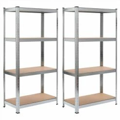 This durable storage shelf set, which consists of 2 shelves, is an ideal choice for your kitchens, laundry rooms, basements, bathrooms, offices, as well as anywhere you need extra storage. The shelves are constructed from MDF and supported by heavy duty steel frame with a loading capacity of up to 320 kg. Featuring a compact design, the shelves will make the most use of limited space. Thanks to the zinc-coating treatment, the storage racks are corrosion-resistant and durable. In addition, each versatile shelf can be dismantled into two separate small shelf racks. The shelves are easy to assemble. Delivery includes 2 storage shelves.