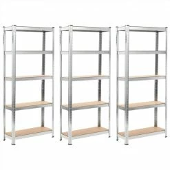 This durable storage shelf set consisting of 3 shelf racks is a perfect choice for your kitchens, laundry rooms, basements, bathrooms, offices, as well as anywhere you need extra storage. These shelves are constructed from MDF and supported by heavy-duty steel frame with a loading capacity of up to 375 kg. Featuring a compact design, the shelf will make the most use of limited space. Additionally, thanks to the zinc-coating treatment, the storage racks are highly corrosion-resistant and sturdy. Each versatile shelf can be dismantled into two separate small shelf racks. The shelves are easy to assemble. Delivery includes 3 storage shelves.