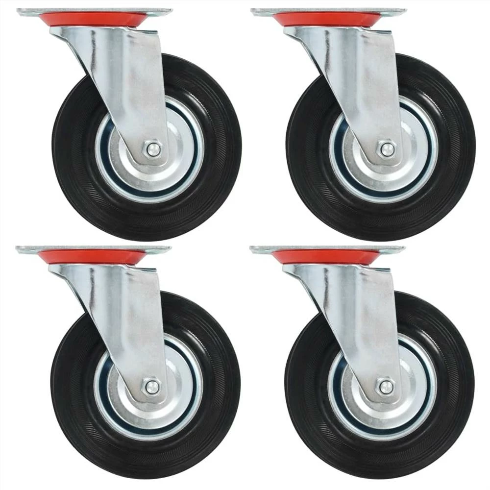 This set of 4 swivel casters will be the perfect accessory for small equipment and furniture like workbench, trolley, coffee table, plant stand, bookshelf, shopping cart, etc. These casters are made of rubber which is distinguished by a good shock and vibration resistance, enabling these casters to run smoothly and quietly. Additionally, their soft surfaces effectively protect your floor from scratching. Besides, the zinc-coated iron frame is highly rust-resistant and thus adds to the catser’s sturdiness and durability. Each caster has a maximum loading capacity of up to 100 kg. Delivery includes 4 swivel casters.