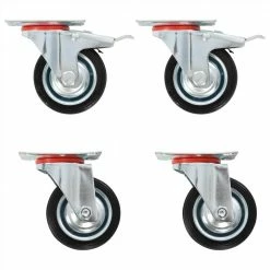 This set of 4 swivel casters will be the perfect accessory for small equipment and furniture like workbench, trolley, coffee table, plant stand, bookshelf, shopping cart, etc. These casters are made of rubber which is distinguished by a good shock and vibration resistance, enabling these casters to run smoothly and quietly. Additionally, their soft surfaces effectively protect your floor from scratching. Besides, the zinc-coated iron frame is highly rust-resistant and thus adds to the catser’s sturdiness and durability. Two of these swivel casters are equipped with double brakes for flexible control. Each caster has a maximum loading capacity of up to 50 kg. Delivery includes 2 swivel casters and 2 swivel casters with double brakes.