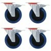 This set of 4 swivel casters with double brakes will be the perfect accessory for small equipment and furniture like workbench, trolley, coffee table, plant stand, bookshelf, shopping cart, etc. These casters are made of rubber which is distinguished by a good shock and vibration resistance, enabling these casters to run smoothly and quietly. Additionally, their soft surfaces effectively protect your floor from scratching. Besides, the zinc-coated iron frame is highly rust-resistant and thus adds to the catser’s sturdiness and durability. These swivel casters are equipped with double brakes for flexible control. Each caster has a maximum loading capacity of up to 120 kg. Delivery includes 4 swivel casters with double brakes.
