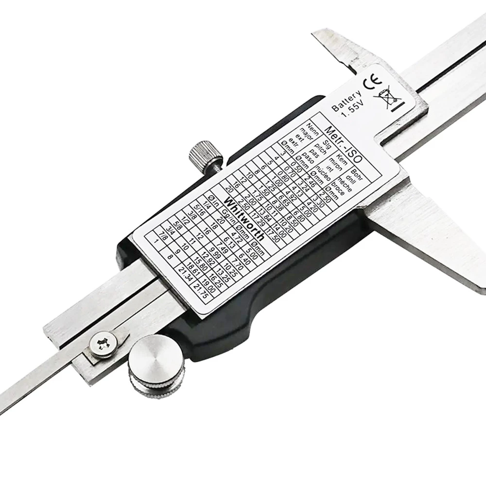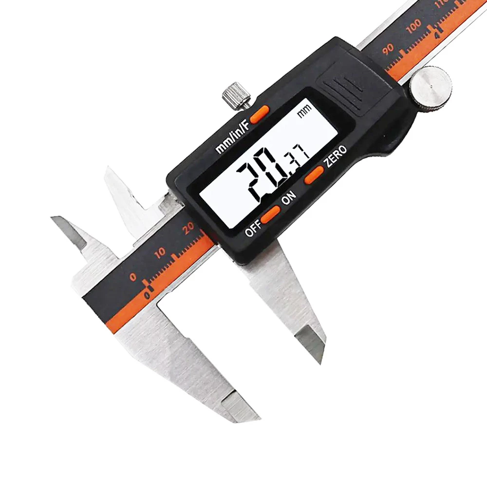The stainless steel electronic digital caliper shaft with ABS plastic housing, solid and durable, depth-measurement blade, precise internal and external measuring jaws, precision lapping finish electronic digital calipers.